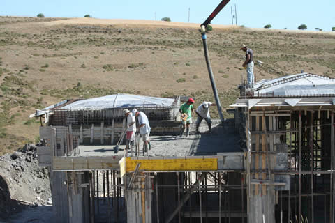 1 flat roof and 2 sloping roofs being concreted today. It is a very dry