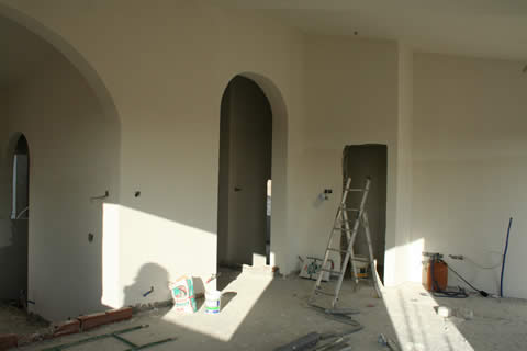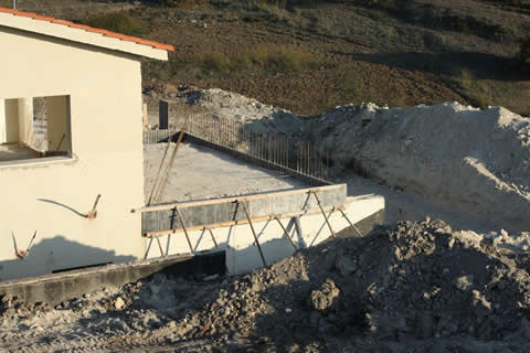 Preparing for verandas at the rear. The one outside the lounge is covered,
